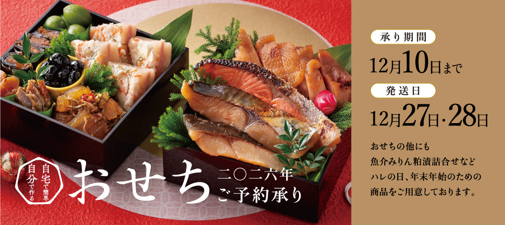 魚を焼いて、盛り付けるだけで完成する、手軽なおせちセットです。 すべて個パック仕様なので必要な分だけ、少しずつお召し上がりいただけます。 おせちとして盛り付けるのはもちろん、一品ずつお酒の肴や ハレの日の夕食にもぴったりです。 |